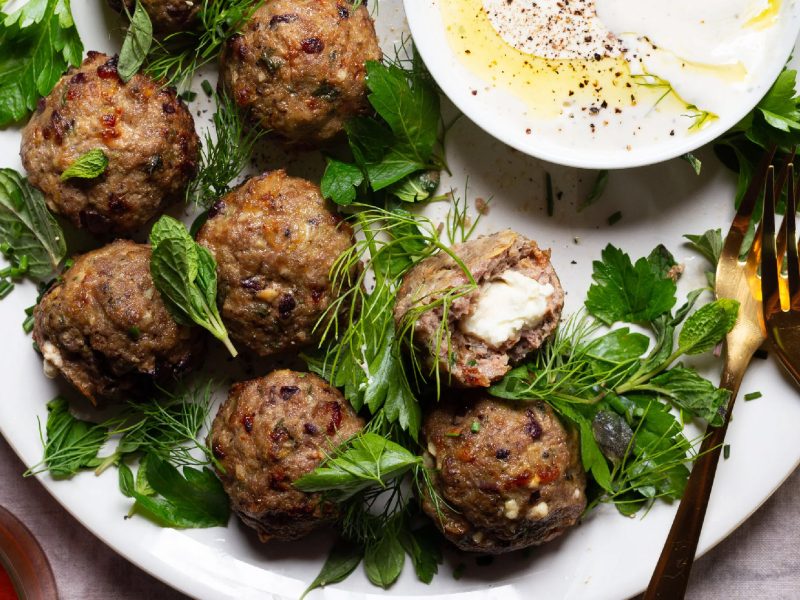 In a small pan, cook ground lamb over medium heat until cooked through. Season lightly with salt and pepper. Drain from fat and set aside.